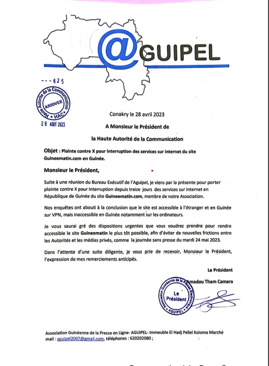 Médias : AGUIPEL saisit la HAC et porte plainte contre X pour interruption des services de Guineematin.com