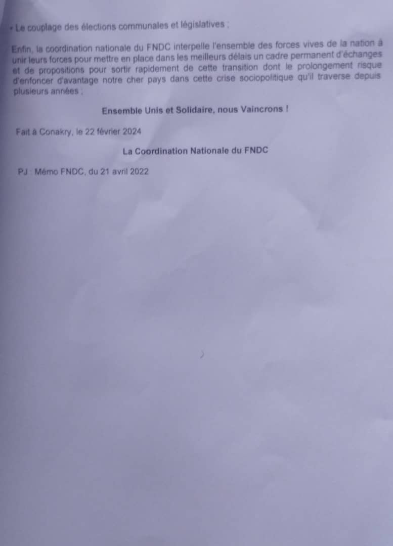 Pour le FNDC, « cet acte vient mettre en évidence les graves manquements dans la gestion des affaires publiques et du non respect des engagements pris le 05 Septembre 2021 vis-à-vis du Peuple de Guinée et de la communauté internationale ».