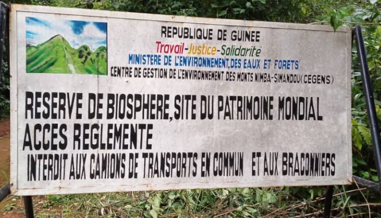 Classée patrimoine mondial en 1944, la biosphère des monts Nimba connaît une forte dégradation due à l’action anthropique. Ce qui lui a valu d’être considérée comme patrimoine en péril depuis 1991. A cheval entre la Guinée, la Côte d’Ivoire et le Libéria, la sauvegarde de cet écosystème est l’objet majeur du programme d’appui pour la préservation des écosystèmes forestiers en Afrique de l’Ouest.