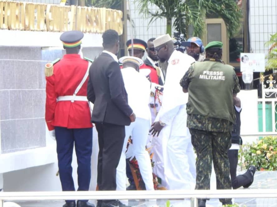 Le président de la République, au moment de ce dépôt de gerbe de fleurs, était accompagné par la première Dame, Lauriane Darboux Doumbouya, mais aussi par de nombreux cadres du gouvernement notamment le premier ministre.