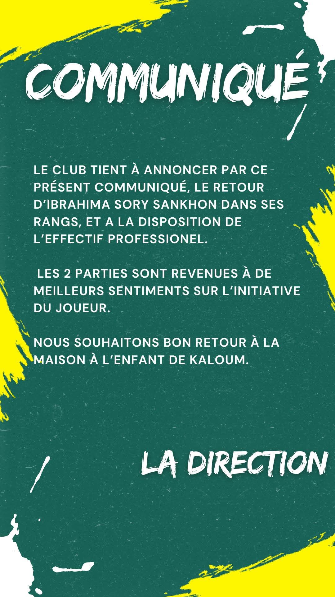 Alors que l’affaire semblait close, un nouveau rebondissement est intervenu ce mardi. Par voie officielle, l’ASK a annoncé que Sankhon a réintégré l’équipe.