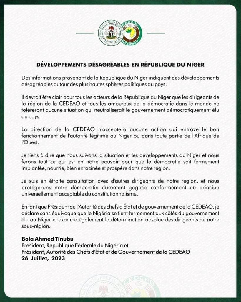 Sans se voiler la face, le successeur de d’Embaló prévient que la direction de la CEDEAO n’acceptera aucune action qui entrave le bon fonctionnement de l’autorité légitime du Niger ou dans toute partie de l’Afrique de l’Ouest.