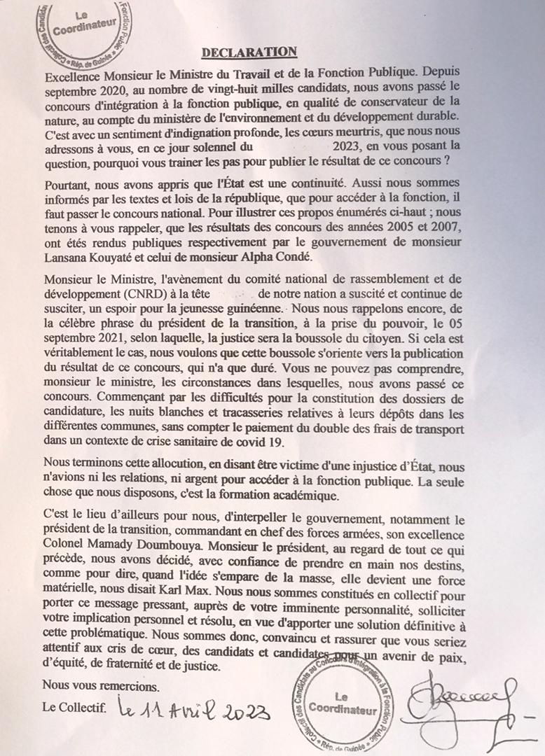 Ci-dessous, la copie de leur déclaration.