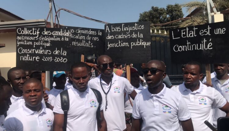 Ce mardi, 11 avril 2023, ils étaient nombreux à descendre dans la rue pour exiger du gouvernement guinéen à travers le Ministère du Travail et de la Fonction publique, la publication des résultats du concours national de recrutement des conservateurs de la nature à la fonction publique tenu au mois de septembre 2020 au compte du Ministère de l’Environnement et du Développement Durable.