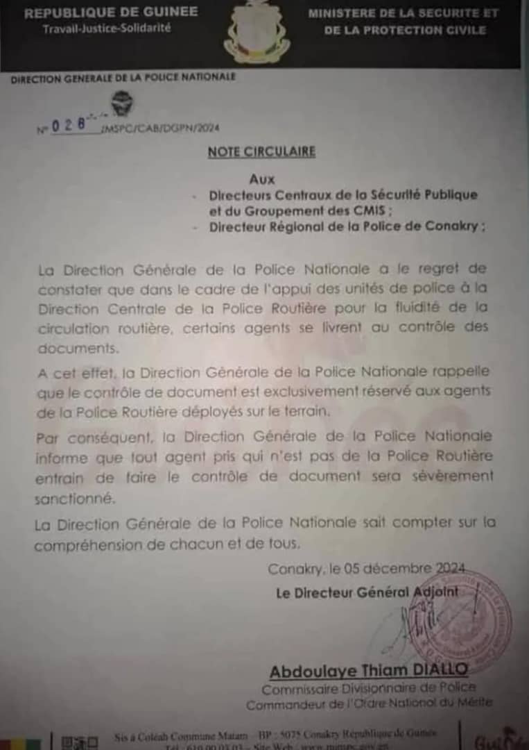 La Direction générale de la police nationale siffle la fin de la récréation et rappelle à tous les agents que le contrôle des documents dans la circulation est exclusivement réservé aux agents de la police routière.