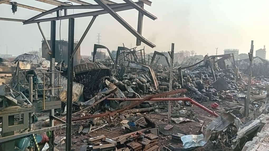 Sur place, le lieu du sinistre ressemble à un endroit de guerre. Les débris des objets calcinés éparpillés ça et là. La fumée qui s’évaporait ces derniers jours s’est estompé. Les traces de l’incendie sont encore visibles sur les habitations qui entourent le principal dépôt d’hydrocarbures du pays. A côté, la plupart des bâtiments qui ont été touchés sont encore décoiffés. Cependant, d’autres sont à moitié détruits par l’explosion.