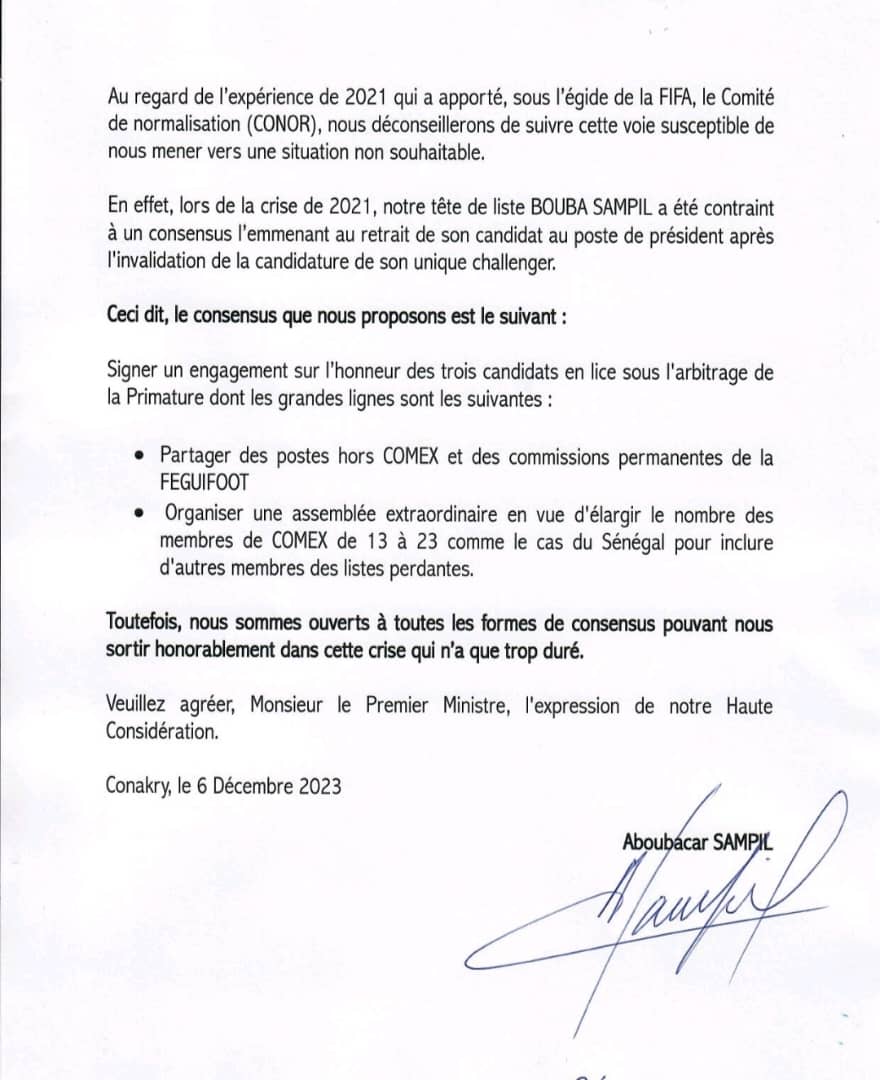 « Compte tenu de tout ce qui précède, toute démarche visant à ramener une liste déjà invalidée par ladite commission serait perçue comme une violation flagrante de nos textes. Au regard de l’expérience de 2021 qui a apporté, sous l’égide de la FIFA, le Comité de normalisation (CONOR), nous déconseillerons de suivre cette voie susceptible de nous mener vers une situation non souhaitable ».