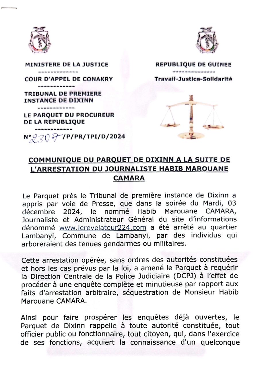 Lire ci-dessous, le communiqué du parquet de Dixinn !