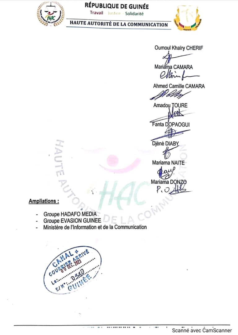 Jusqu’où ira la Haute Autorité de la Communication (HAC) dans sa nouvelle démarche vis-à-vis de certains médias ? Impossible de répondre pour le moment, mais toujours est-il que l’instance de régulation des médias en Guinée reste droite dans ses mocassins. En effet, après avoir ordonné mercredi, 6 décembre 2023, le retrait de Djoma média du bouquet Canal+, Espace et Évasion version radio et télé sont également retirés du bouquet Canal Plus sur ordre de la HAC, dit-on.