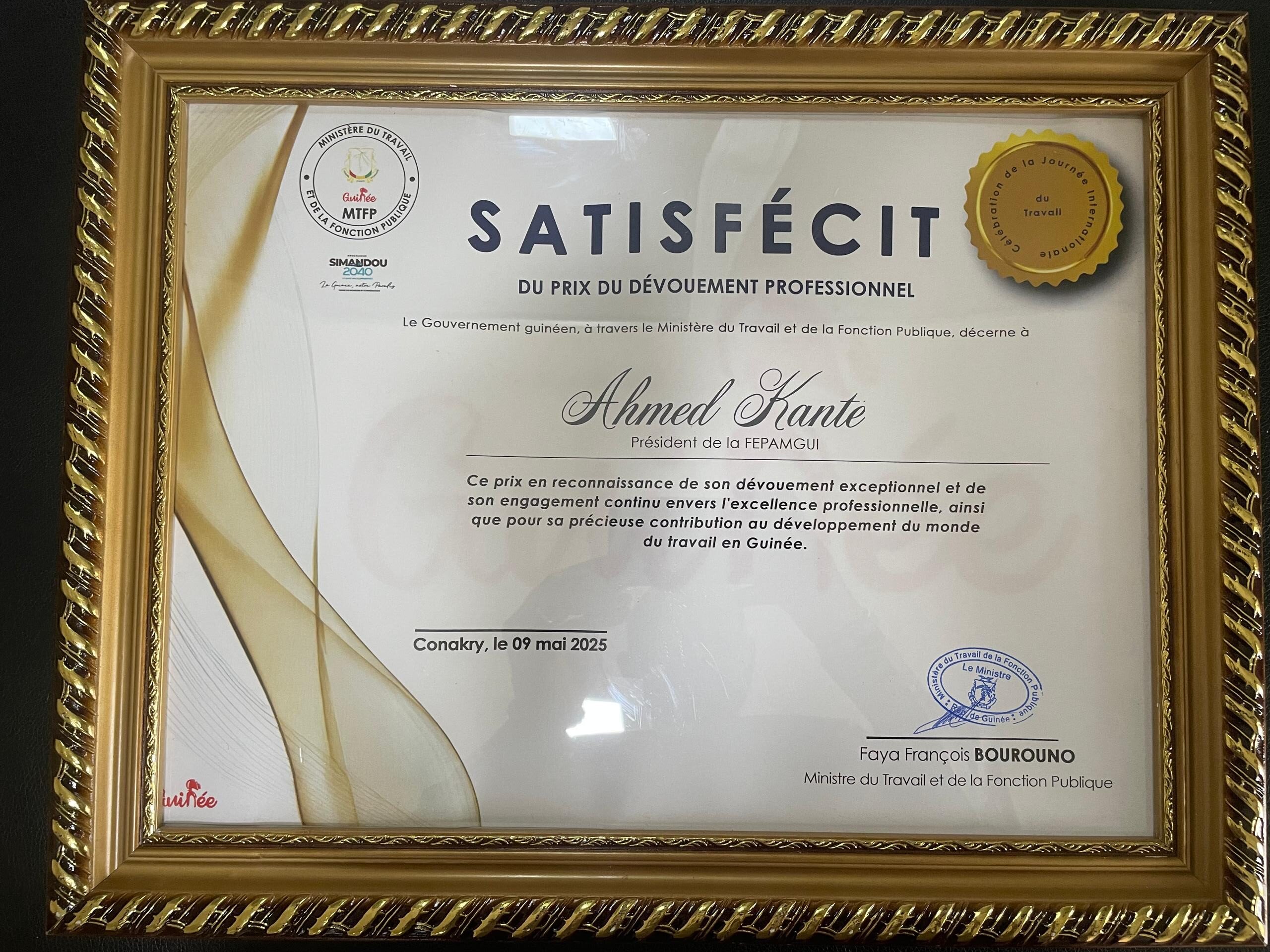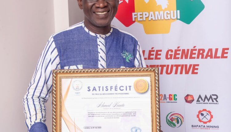 Les efforts du président de la Fédération patronale des Guinéens du secteur minier (FEPAMGUI) sont reconnus par les autorités de la transition. En effet, le Prix du dévouement professionnel a été donné à Ahmed Kanté pour sa contribution à l’amélioration des conditions de travail dans le secteur minier. Un prix qui réjouit le FEPAMGUI qui, dans un communiqué parvenu au Desk de Siaminfos.com, à exprimé ses vifs remerciements au président de la République, au gouvernement et au ministre du Travail.