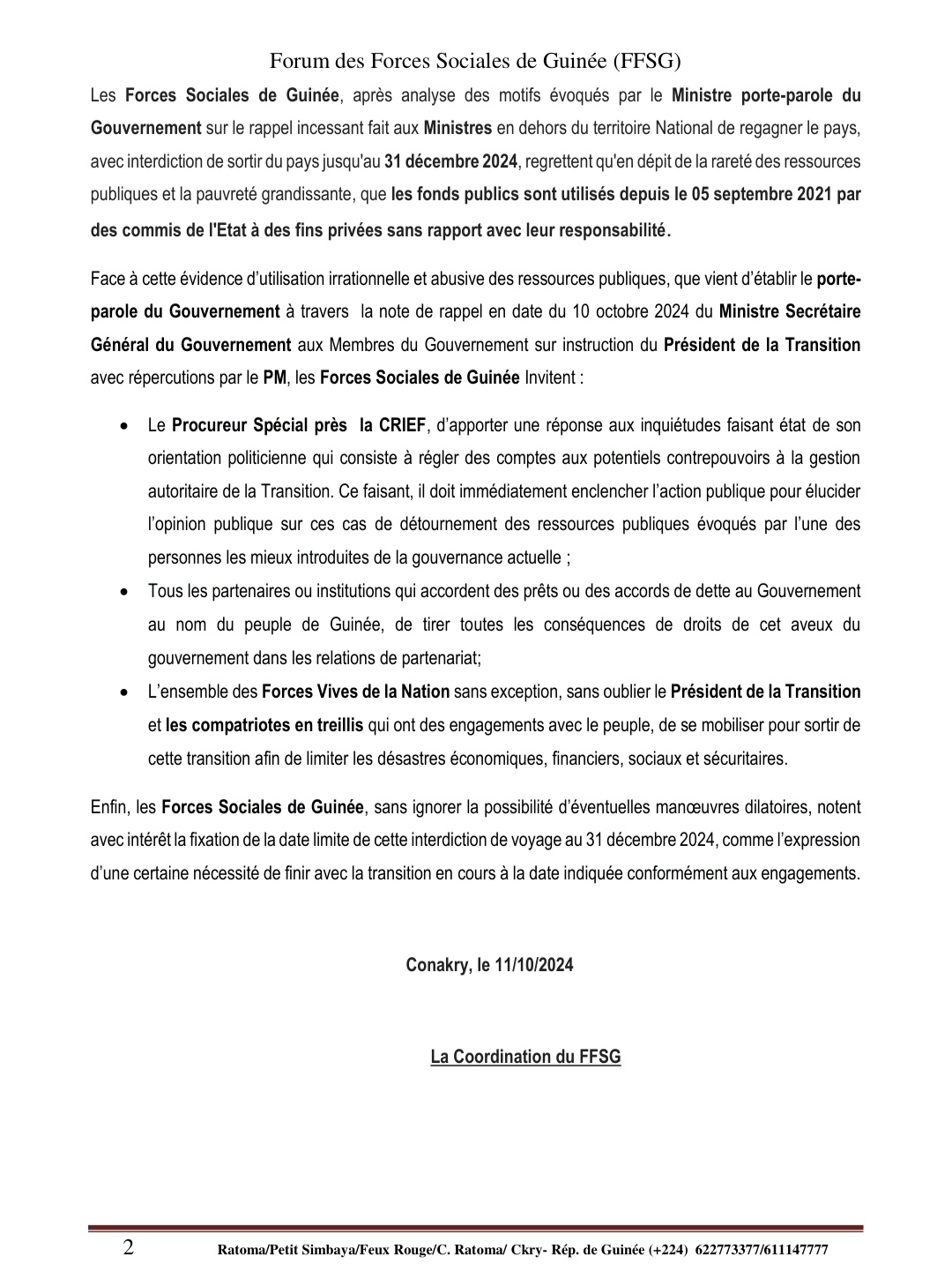 Ci-dessous, la déclaration du Forum des Forces Sociales de Guinée !