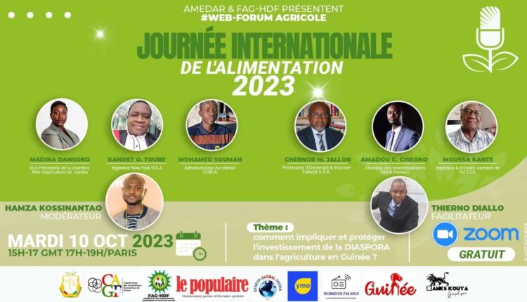 Aux dires de bon nombre d’observateurs, la Guinée regorge assez de potentialités agricoles. Des potentialités qui restent aujourd’hui peu exploitées. Pour pourvoir changer la donne, la diaspora guinéenne entend jouer sa partition. A l’occasion de la journée internationale de l’alimentation, un forum virtuel dont la modération a été assurée par Hamza Kossinantao, avec pour thème : « Comment impliquer et protéger l’investissement de la diaspora dans l’agriculture en Guinée », a été organisé ce mardi, 10 octobre 2023. L’occasion a été mise à profit par les participants pour aborder l’apport de la diaspora dans ce secteur indispensable pour l’essor économique du pays, dit-on.