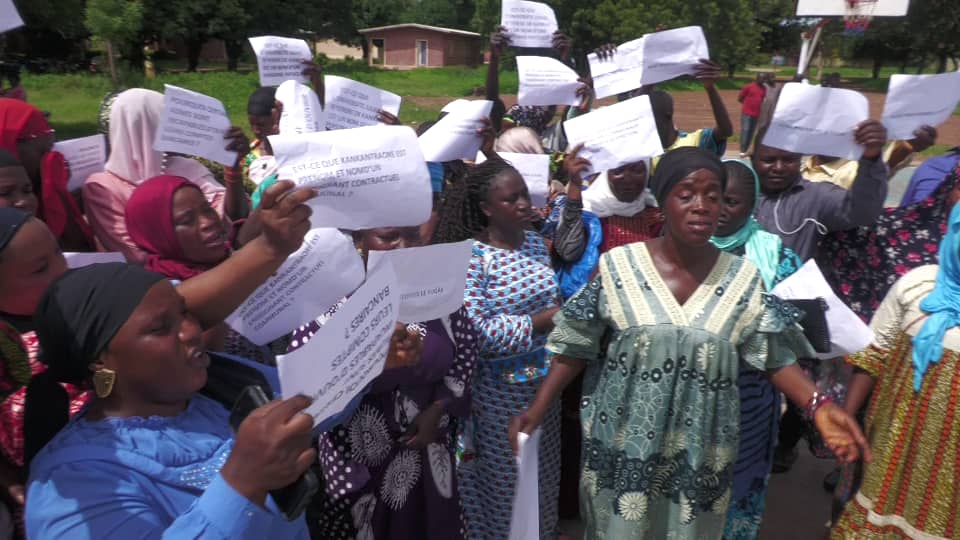 Avec des pancartes sur lesquelles on pouvait lire « Est-ce que l’université Julius Nyérere de Kankan est une personne physique » ou encore « Kankan Traoré est-il un nom ? », ces enseignants demandent au ministère de corriger les anomalies qui entachent les résultats issus du concours d’accès à la fonction publique locale.