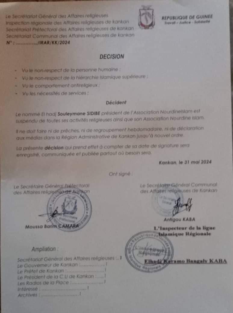 Ce lundi 3 juin 2024, dans une déclaration conjointe lue devant plusieurs imams et journalistes, la Ligue Islamique régionale a pris une certaine mesure à l’encontre de Karamo Solo, qui est accusé de s’être attaqué vertement aux responsables religieux ces derniers temps. Parmi ces mesures, figurent, l’interdiction de toute activité religieuse dans la région, l’interdiction de la prêche dans les radios, suspension momentanée du regroupement de son association.
