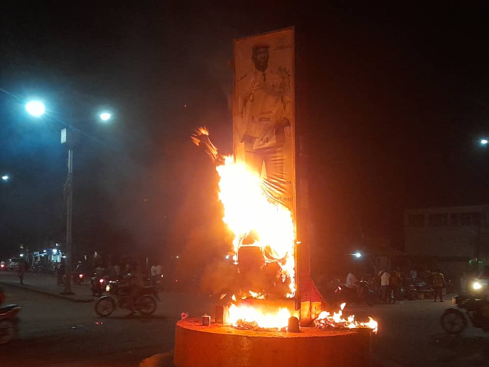 Cette image ci-dessus date de la nuit du lundi dernier lors d’une manifestation contre le délestage électrique, à Kankan. Ce jeudi, le rond-point Komarala loisirs affiche un tout nouveau visage. Ce carrefour emblématique de la commune urbaine de Kankan est restauré par des jeunes et affichent deux grandes effigies de l’homme du 05 septembre 2021.