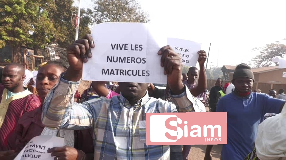 Dans la foulée, on pouvait entendre des slogans comme » à bas la coordination nationale, à bas Alseny Mabinty Camara, non aux numéros matricules contractuels, vive la fonction publique, à bas les traites ».