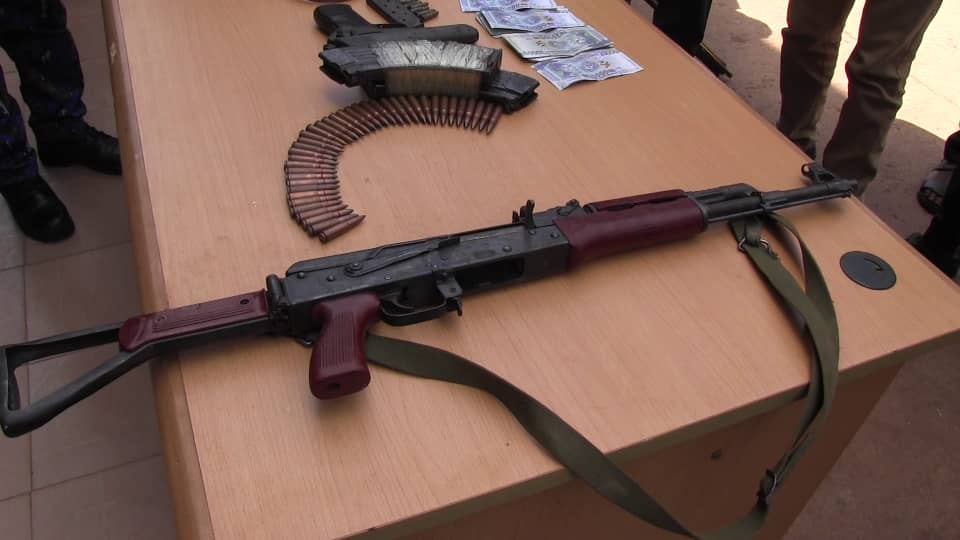 « Nous vous présentons ces six individus qui ont été interpellés à savoir : à kankan deux personnes, à Siguiri deux personnes et à N’zerekore deux personnes qui sont respectivement, « Djiba Koita alias Navigator », Soldat deuxième classe Bangaly Bérété, Issa Kanté alias Magazine », Bangaly Condé, alias Papillon, Laye kanikouma Doumbouya alias Papa, et Moussa Konaté alias Bob. Ces personnes interpellées ont tous été mise à disposition de la brigade de recherches de kankan pour des fins d’enquêtes. Ces personnes mises en cause sont soupçonnées pour des faits d’association de malfaiteurs, de vol à main armée et complicité, détention et trafic d’armes de guerre et de fausses monnaies ».