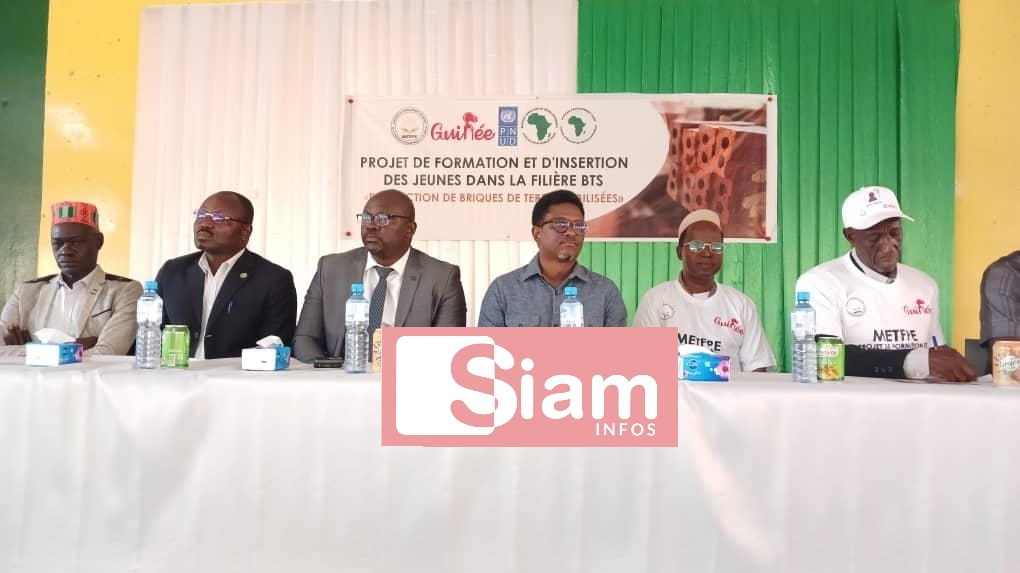Labé : le ministre Alpha Bacar préside le lancement du projet de formation et d’insertion des jeunes dans la filière BTS « Brique en terre stabilisées »
