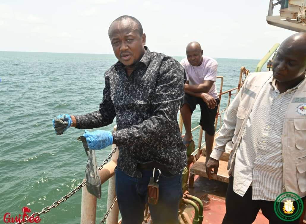 Nous vous l’annoncions dans nos précédents articles, depuis le 28 avril dernier, une mission pilotée par le directeur général du laboratoire d’analyses environnementales est en haute mer pour évaluer qualitativement et quantitativement le niveau de la pollution des eaux et sédiments le long du littoral guinéen. Selon le ministère de l’Environnement et du Développement Durable, la mission sera l’occasion pour le département d’aller vers une approche pragmatique pour une évaluation du niveau d’impact de la nappe d’eau jaunâtre irritante et corrosive dans le but de proposer des pistes de solutions pour sa meilleure gestion.