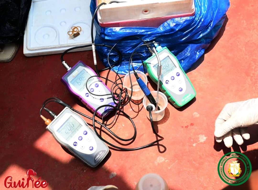 « Dès le départ de Conakry, l’équipe scientifique a visité trois sites : l’embouchure de Malakoré, passage de Forécariah, bras de mer de Moribaya où l’équipe a fait le prélèvement de sédiments et d’eau. En plus de ces deux prélèvements, ils ont fait sur place des analyses et mesures physico-chimique concernant la qualité de l’air pour pouvoir projeter des analyses qu’ils doivent faire au laboratoire une fois à Conakry. Ils ont fait survoler le drone pour pouvoir constater l’existence de cette nappe jaunâtre dans les eaux guinéennes sur un rayon de 10 km, entre l’embouchure de Forécariah et Moribaya. L’équipe a rencontré les communautés de pêcheurs pour se rassurer s’ils n’ont pas retrouvé de la nappe jaune par endroit parce qu’ils étaient en provenance du port de Conakry. Heureusement, ces pêcheurs disent n’avoir constaté aucun impact durant leur trajet », peut-on lire sur la page Facebook du département.