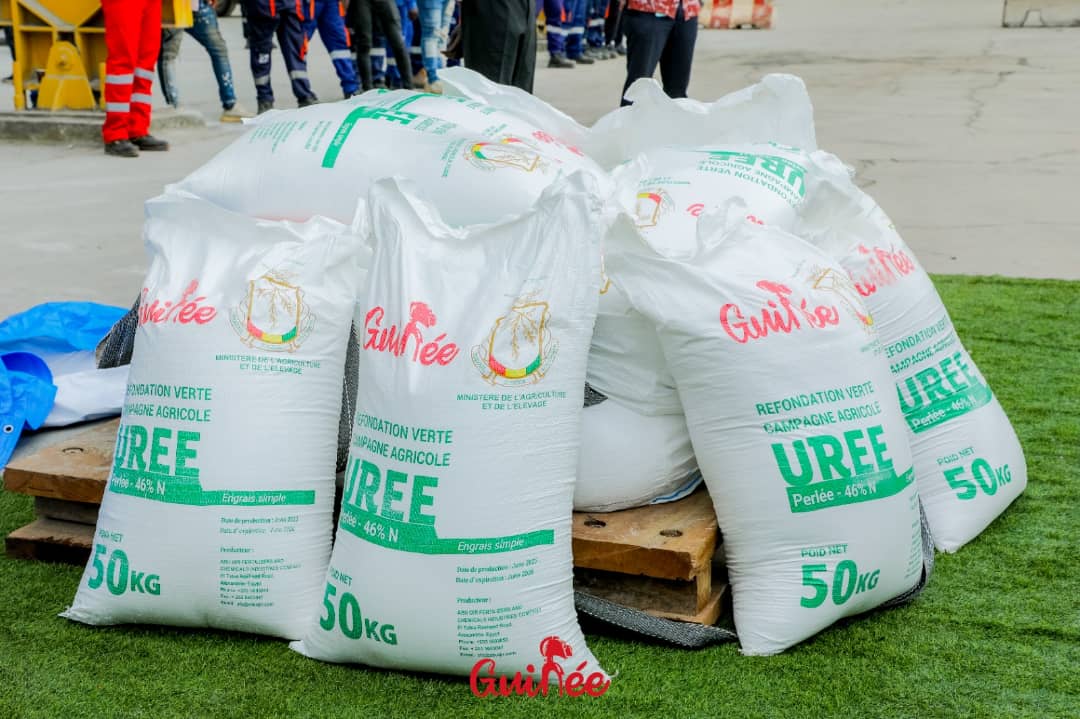 << C’est avec un immense plaisir que je viens au port autonome de Conakry réceptionner au nom du président de la République 28 000 tonnes d’urée.  C’est un évènement historique pour notre pays et notre secteur agricole. Son excellence colonel Mamadi Doumbouya a très tôt compris que le secteur agricole représente non seulement une source majeure d’emploi pour nos concitoyens mais aussi le pilier de notre sécurité alimentaire. Il est important de rappeler que dans le cadre de la refondation verte le budget du ministère a été rehaussé de façon exceptionnelle en passant de 300 milliards en 2021 à 1900 milliards de francs guinéens en 2022 >> déclare Dr Bernard Goumou avant de préciser que le sac de 50 Kg sera vendu à 300 000 francs guinéens.