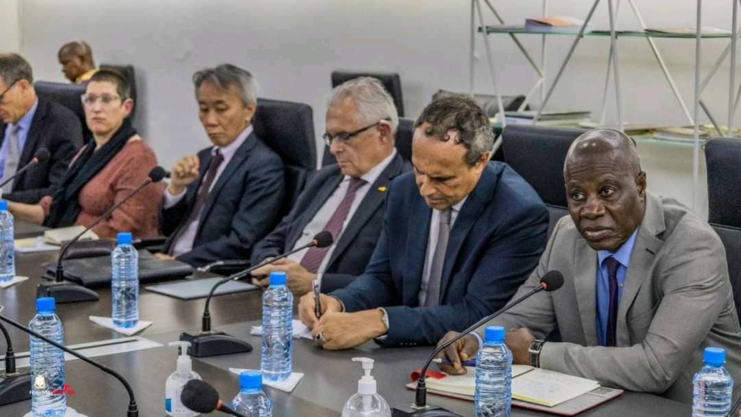 Le Premier ministre guinéen de transition a reçu ce mercredi, 7 juin 2023, les ambassadeurs du G5 Guinée (CEDEAO, UE, SNU, France, Allemagne, Royaume-Uni, Japon, USA), au palais de la Colombe. Dr Bernard Goumou, accompagné de plusieurs membres du gouvernement dont le chef de la diplomatie guinéenne Morissanda Kouyaté et le ministre de l’Administration du Territoire et de la Décentralisation Mory Condé, a échangé avec les hôtes autour des derniers gestes posés par la junte guinéenne, pour la décrispation du climat sociopolitique dans le pays, et probablement conduire la Guinée vers le retour des civils au pouvoir.